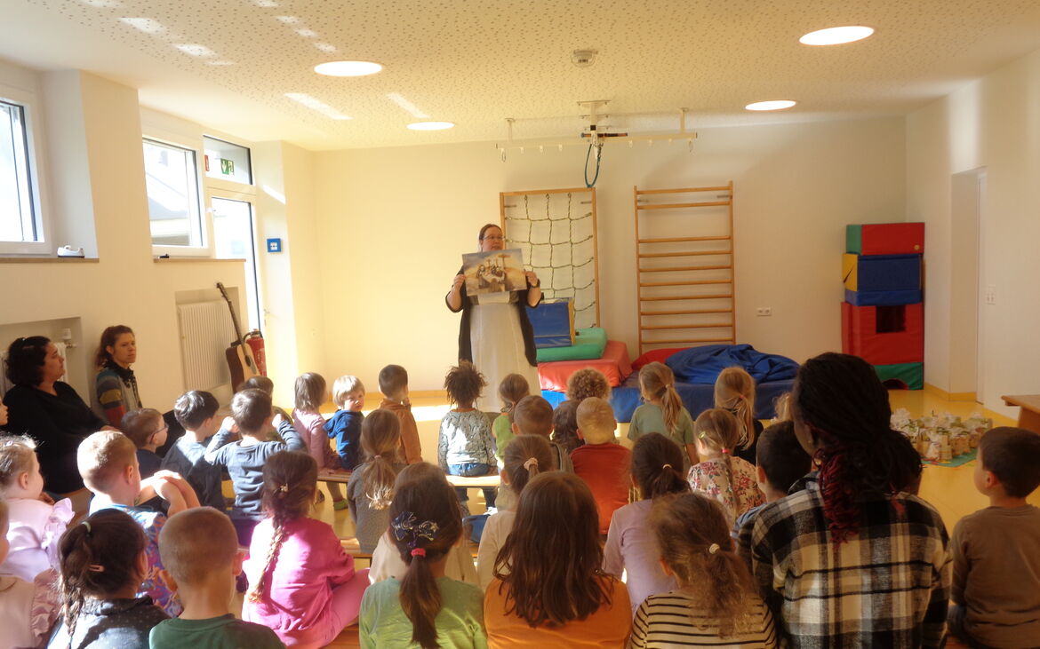 Unabhängig von ihrer ethnischen und religiösen Herkunft achten wir jedes Kind als Geschöpf Gottes in seiner Einmaligkeit und Originalität. Wir erzählen den Kindern Geschichten aus der Bibel, beten mit ihnen und singen christliche Lieder. Das Nachspielen gehörter Geschichten und das Feiern von Festen bereitet den Kindern Freude und vertieft ihr Wissen um das Geliebt- und Geborgensein bei Gott.